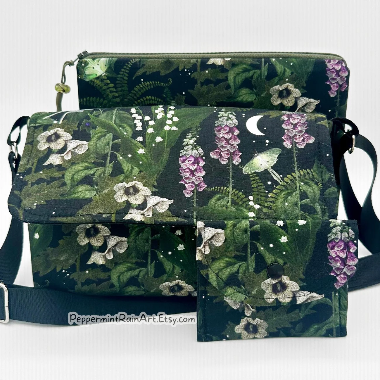This is a 3-piece matching set including 1 Small Messenger Purse, 1 Cosmetic Zipper Bag, and 1 Card Holder/Mini Wallet.